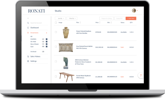 Dealers all over the world use Ronati to manage their inventory, from the first photo of that perfect find to documenting its final sale — and everything in between.